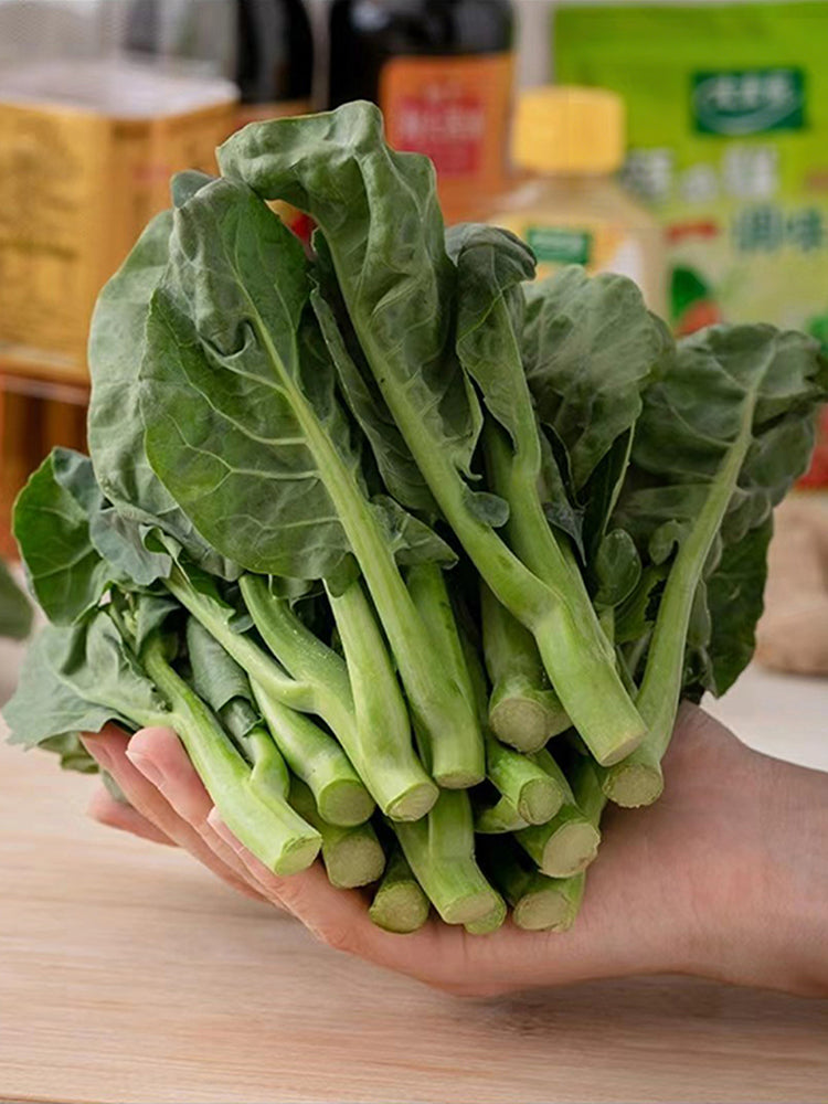 - This high-quality Chinese Kale variety exhibits vigorous growth, reaching a plant height of approximately 32 cm. It features dark green, wrinkled leaves with short petioles and white flowers. The primary stem is robust, growing to about 26 cm. The variety demonstrates strong resilience, with good tolerance to cold, rain, and moderate heat. It thrives in temperatures ranging from 12°C to 28°C. The seedling stage lasts about 25 days, with approximately 60 days from sowing to the first harvest. It offers an extended harvesting period of 40-50 days, resulting in high productivity and excellent yield. The texture is tender with low fiber content and a pleasant taste.