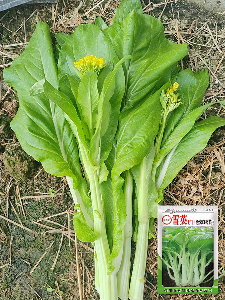 - This variety is a new generation, early-maturing F1 hybrid choy sum. It requires approximately 50 days from sowing to the first harvest. The flower stalks are pure white, thick, and tender, complemented by yellowish-green leaves, giving the plant an exceptional appearance. It offers a sweet, crisp flavor and high-quality eating quality. The plants produce an abundant number of rapidly regrowing lateral shoots, leading to an extended harvesting period. It demonstrates high yield potential, reliable productivity, and strong comprehensive stress tolerance. Well-adapted to a range of growing conditions, it performs best when cultivated in fine-textured, fertile soils.